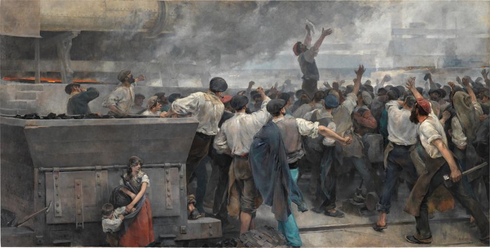| Keywords: Vicente Cutanda - Una huelga de obreros en Vizcaya (1892).jpg Artwork Creator Vicente Cutanda 1892 oil on canvas Size cm 550 275 Institution Prado P07793 Object history Adquirido al autor para el Museo del Prado 1893; Museo de Arte Moderno 1894-1971 https //www museodelprado es/coleccion/obra-de-arte/epilogo/ba919438-90a9-4e2f-ae95-61034ae25375 Museo del Prado Madrid PD-old-auto-1923 1925 DEFAULTSORT Cutanda Vicente; Una huelga de obreros en Vizcaya 1892; Prado Vicente Cutanda Spanish 19th-century paintings in the Museo del Prado |
