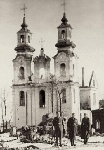 | Keywords: Viciebsk, Zadźvińnie-Piatroŭskaja. Віцебск, Задзьвіньне-Пятроўская (1941).jpg Віцебск Viciebsk Задзьвіньне Zadźvińnie вуліца Пят оўская vulica Piatroŭskaja Ца ква Сьвятых Апосталаў Пят а і Паўла Вікта Ба ысенкаў Таямніцы Віцебска author between 1941 1944 PD-old-70 History of Vitebsk Church of Saints Peter and Paul in Viciebsk |