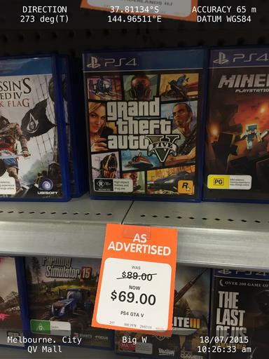 Keywords: WOOLWORTHS LIMITED 1 WOOLWORTHS WAY BELLA VISTA NSW 2153 AUSTRALIA Attention: Mr. Alistair McGeorge Chief Executive Officer of Big W VIDEO GAMES WITH INCORRECT PRICE TAG SHOCKED CUSTOMERS INTO SPREADING BAD WORD OF MOUTH WHICH AFFECT PROFITS N MANAGEMENT BONUS Dear Mr. McGeorge, I wish you well. I wish that the staff at BIG W, QV Mall, Melbourne City, Victoria, Australia could be more vigilant in assigning the right price tag to the right video games to avoid customers getting price shock during payment of the video games (see photo enclosed). The price tag was assigned wrongly. I had took the liberty to reposition the price tag to the right video game. Please share this feedback as a reminder to all staff to take extra care in their duties and pay attention to all details. retail melbourne australia