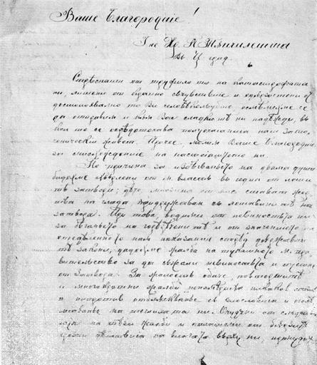 Keywords: Vidritsa-letter-1.jpg Писмо от заточениците в Диа беки до Х исто Тъпчилещов в Ца иг ад от Вид ица ъкописна книга на поп инчо Кънчев 1836-1904 A letter from Bulgarian exiles in Diarbekir to Hristo Tapchileshtov from Vidritsa a handwritten manuscript by Bulgarian priest Mincho Kanchev 1836-1904 Скани ано от изданието на книгата от 1983 г издателство Бълга ски писател София Scanned from the 1983 edition of the book published by Бълга ски писател publishing house Sofia П еди 1878 Before 1878 Поп инчо Кънчев Mincho Kanchev Vidritsa PD-old |