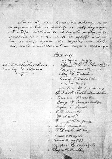 Keywords: Vidritsa-letter-3.jpg Писмо от заточениците в Диа беки до Х исто Тъпчилещов в Ца иг ад от Вид ица ъкописна книга на поп инчо Кънчев 1836-1904 A letter from Bulgarian exiles in Diarbekir to Hristo Tapchileshtov from Vidritsa a handwritten manuscript by Bulgarian priest Mincho Kanchev 1836-1904 Скани ано от изданието на книгата от 1983 г издателство Бълга ски писател София Scanned from the 1983 edition of the book published by Бълга ски писател publishing house Sofia П еди 1878 Before 1878 Поп инчо Кънчев Mincho Kanchev Vidritsa PD-old
