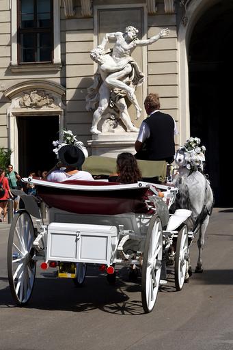 Keywords: vienna horse drawn carriage austria coach horses human spokes attraction wagon nostalgia fiaker white horses carriage ride tourists castle eke