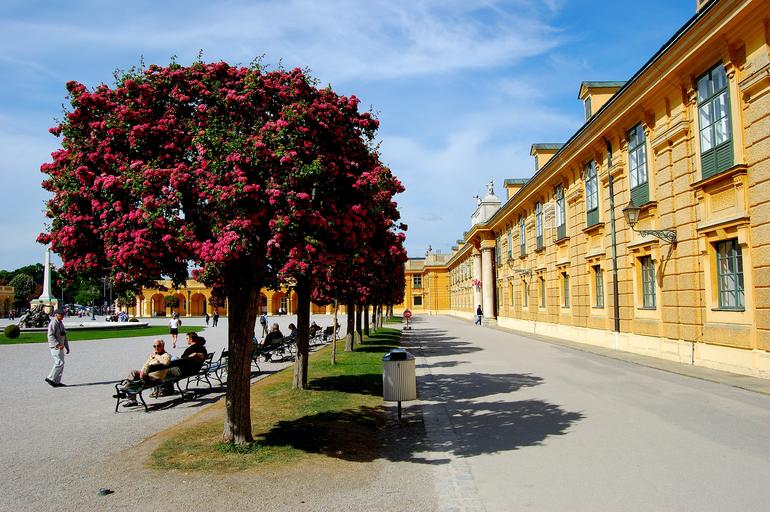 Keywords: vienna schönbrunn blue sky clouds sky blue federwolke bright tourists perspective