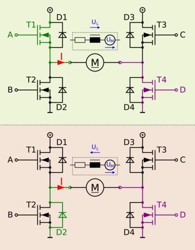 Keywords: Vierquadrantensteller-tiefsetzsteller-rechtslauf.svg de de Vierquadrantensteller own Biezl Inkscape Electrical power conversion diagrams