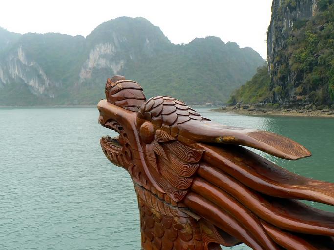 Keywords: viet nam halong sugarloaves dragon bow figurehead boat decorative ship