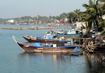 Keywords: viet nam hoi-an lagoon boats fishermen colors