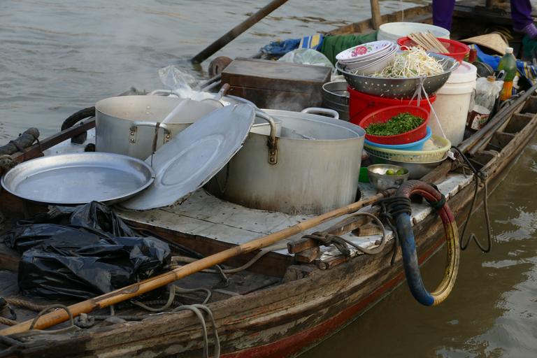 Keywords: vietnam asia kitchen transport ship boot shipping mekong river pot bowl market