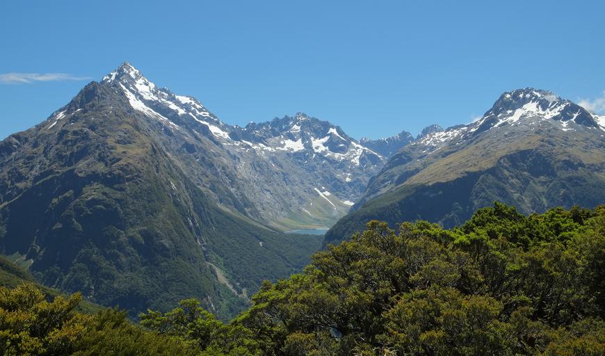 Keywords: View from Key Summit towards Lake Marian.jpg View from Key Summit towards Lake Marian with Mt Christina on the left Own 2016-01-09 Pseudopanax wikipedia en 44 49 2 5 S 168 7 35 E Mountains of New Zealand Key Summit