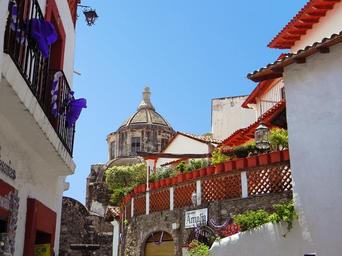 Keywords: view town travel architecture city tourism cityscape panorama mexico taxco mountains church scenery village scenic historic destination culture street history