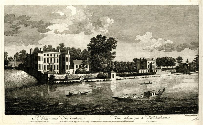 | Keywords: View of Twickenham from the Thames.jpg en Boydell Delin Sculp Publish'd according to Act of Parliament Sold by J Boydell Engraver at the Unicorn the Corner of Queen Street Cheapside London 1753 Engraving paper watermarked with very large margins Plate 249 x 412mm 9¾ x 16¼ View of Twickenham from the Thames Two large houses on the bank one belonging to Barnaby Backwell and another belonging to Dr Battie further along as indicated in key below Three boats on the water From A Collection of One Hundred Views In England and Wales John Boydell's 'Collection of Views' was made after he turned from engraver to print publisher in 1767 The first collection was issued in 1770 and included some plates by printmakers other than himself Adams 47 31; Gascoigne Ditchburn 196 http //www grosvenorprints com/stock_detail php ref 29324 J Boydell Engraver 1753 PD-Old River Thames in London Twickenham 1753 engravings |