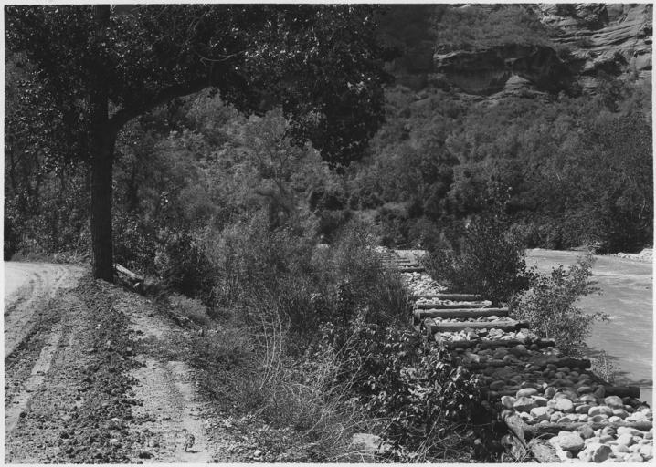 | Keywords: View of Virgin River below Temple of Sinawava showing wing dam protecting the road and vegetation growing behind the... - NARA - 520497.jpg Scope and content General notes 520497 Local identifier 79-ZBC-Z319 Department of the Interior National Park Service 1916 - 1933 NARA-Author Grant George A Photographer 1226390 <br /> Utah United States North and Central America state 4192116 40 -110 <br /> Still Picture Records Section Special Media Archives Services Division NWCS-S National Archives at College Park 8601 Adelphi Road College Park MD 20740-6001 1929-09-10 Record group Record Group 79 Records of the National Park Service 1785 - 2006 Record group ARC 408 Photographs of the Zion and Bryce Canyon National Parks 1929 compiled 1929 - 1929 Series ARC 520209 File unit File unit ARC Variant control numbers NAIL Control Number NWDNS-79-ZBC-Z319 Other versions <gallery> File View_of_Virgin_River_below_Temple_of_Sinawava_showing_wing_dam_protecting_the_road_and_vegetation_growing_behind_the _-_NARA_-_520497 tif tif File View_of_Virgin_River_below_Temple_of_Sinawava_showing_wing_dam_protecting_the_road_and_vegetation_growing_behind_the _-_NARA_-_520497 jpg jpg </gallery> NARA-cooperation PD-USGov North Fork of Virgin River Dams in Utah |