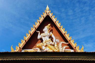 Keywords: viewpoint architecture art asia beautiful azure buddha buddhism buddhist building carving decorate design of outer gables of the old gold east peace religion the snake side roof sky statue the structure the format sukhothai thailand temple
