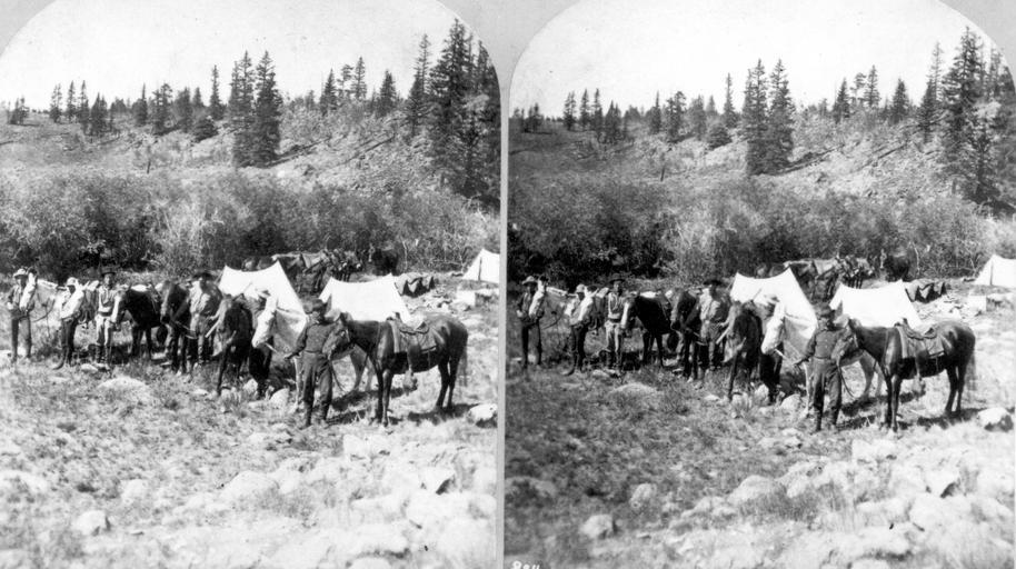 | Keywords: stereoscopic stereophotography stereophotographs historical usgs history geology mapping black and white blackandwhite bnw stereograph blackandwhite monochrome outdoor snow black and white Views among the Rocky Mountains of Colorado. Camp scene. The 1874 Photographic Division on the way to Los Pinos and Mesa Verde. Left to right: Smart, Anthony, Mitchell, Whan, Ernest, Ingersoll, and Charley, the cook. Dolly, the mule, stands between Charley and Ingersoll. Colorado. 1874. (Stereoscopic view similar to Jackson, W.H. 359) Views among the Rocky Mountains of Colorado. Camp scene. The 1874 Photographic Division on the way to Los Pinos and Mesa Verde. Left to right: Smart, Anthony, Mitchell, Whan, Ernest, Ingersoll, and Charley, the cook. Dolly, the mule, stands between Charley and Ingersoll. Colorado. 1874. (Stereoscopic view similar to Jackson, W.H. 359) |