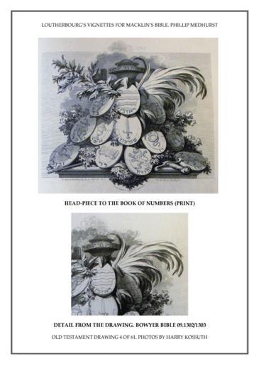 | Keywords: Vignette by Loutherbourg for the Macklin Bible 4 of 134. Bowyer Bible Old Testament. Headpiece to Numbers.gif en Head-piece to Numbers Numbers cap 1 v 2 ™Take ye the sum of all the congregation of the children of Israel after their families by the house of their fathers with the number of their names every male by their polls ™ Vignette with a pyramid of shields with images including sword lion ship deer serpent and lion “ symbols of the tribes of Israel “amongst symbolic foliage and with an incense-burner above The palm and the laurel are for victory the oak for steadfastness The idea is that the victories of the Israelites over the idolatrous Canaanites render honour to Jehovah The print has letterpress in two columns below and on verso 1791 Inscriptions Lettered below image with production detail P I de Loutherbourg R A invt et del W Skelton Sculpsit and publication line London Published Decr 15 1791 by Thos Macklin Fleet Street Print made by William Skelton Dimensions height 484 millimetres; width 390 millimetres Photos by Harry Kossuth Phillip Medhurst 1791-12-15 PD-old-100 Book of Numbers Vignettes by Loutherbourg for the Macklin Bible Vignette Drawings by Loutherbourg in the Bowyer Bible Tribes of Israel Israelites Art depicting the Old Testament by Philippe De Loutherbourg William Skelton |
