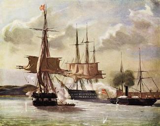 Keywords: Vilhelm Pedersen - Scene af slaget ved Eckernførde - 1849.jpg Vilhelm Pedersen en Scene from the battle at Eckernførde Left to right The sail frigate Gefion the sail ship of the line Christian den Ottende and the paddle steamer Geiser trying to tow the Gefion to a better postition From there everything went wrong for the Danes 1849 oil canvas cm 28 36 5 Institution Frederiksborgmuseet place of discovery object history exhibition history credit line accession number place of creation Scanned from old book thumb left 80px Photo with frame Henrik Bramsen Danske Marinemalere 1962 page 113 PD-old-auto-1923 1859 Vilhelm Pedersen 1849 oil on canvas paintings Paintings in the Frederiksborg Museum 19th-century oil paintings of naval battles 1849 Naval battle at Eckernförde Scanned with Canon Pixma MP550 |