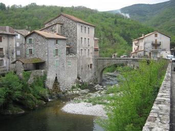 Keywords: stream river green Village Burzet Bourges valley France bridge