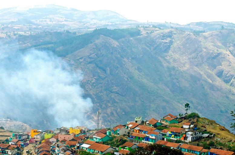 Keywords: village landscape mountains hills smoke view sky scene scenic india