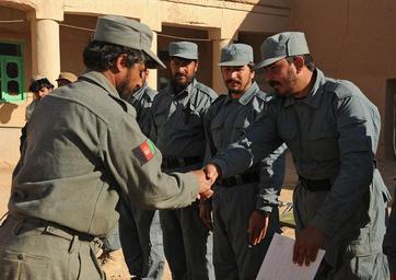 Keywords: Village Veterinary Outreach Program-Afghanistan Local Police student graduation 111202-N-UD522-137.jpg en An Afghan National Police instructor shakes an Afghan Local Police recruit's hand before handing him his graduation certificate in Gizab district Uruzgan province Dec 2 ANP instructors taught ALP recruits during a three week course on basic weapon handling improvised explosive device awareness and patrol movements 2011-12-02 Petty Officer 2nd Class David Brandenburg https //www dvidshub net/image/494366 111202-N-UD522-137 2011-12-03 09 10 GIZAB DISTRICT AF PD-USGov-Military-Navy Urozgan Province Afghan Local Police Images from DoD uploaded by Fæ |
