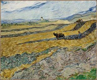 | Keywords: Vincent van Gogh - Afgesloten veld met Ploeger.jpg Artwork Creator Vincent van Gogh 1889 10 oil canvas cm 54 0 65 4 institution Museum of Fine Arts Boston object history <small> Provenance 1890 passed from the artist to his brother Theo van Gogh b 1857 - d 1891 Paris; 1891 probably by descent from Theo van Gogh either to his sister Wilhelmina van Gogh or to his widow Johanna van Gogh-Bonger b 1862 - d 1925 ; 1894-95 possibly sold by Johanna van Gogh-Bonger to Emile Schuffenecker or Julien Moline By 1920 Josse and Gaston Bernheim-Jeune Paris; possibly sold by Bernheim-Jeune to Matthew Justice Dundee Scotland; by 1925 probably sold by Justice to William Boyd b about 1873 - d 1941 Claremont West Ferry near Dundee ; 1929 still with Boyd 1936 Arthur Tooth and Sons London; August 26 1936 sold by Tooth to William A Coolidge b 1901 - d 1992 Topsfield and Cambridge MA; 1993 bequest of William A Coolidge to the MFA Accession Date January 27 1993 </small> credit line Bequest of William A Coolidge accession number 1993 37 http //www mfa org/collections/object/houses-at-auvers-33278 The Museum of Fine Arts Boston PD-old-100-1923 Enclosed Field with Ploughman |