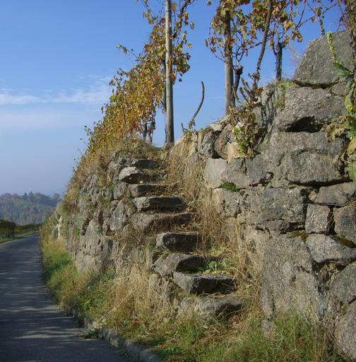 Keywords: vineyard stone stairway emergence rebstock wine stone gradually stairs stone wall ortenau sky blue slope winegrowing oberkirch nature bottenau autumn