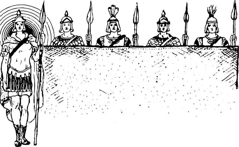 Keywords: vintage black and white sketch drawing retro old people men male group soldiers roman soldiers guards spears