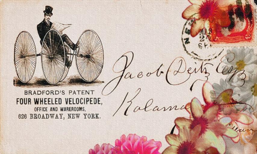 Keywords: vintage postcard collage design bicycle flower old decoration retro love pink red romance romantic rose travel