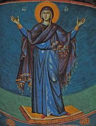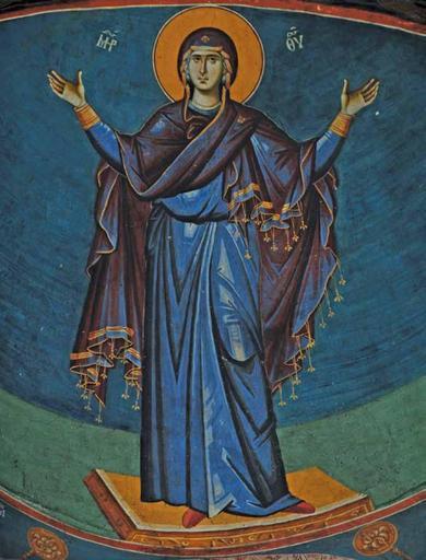 | Keywords: Virgin Orans, conch of apse.jpg  mk Ф еска на Бого одица О анта конха на апсида во ц квата Св Бого одица Пе ивлепта во Ох ид  акедонија en Fresco of Virgin Orans in conch of apse in Church of the Theotokos Peribleptos in Ohrid Macedonia http //www kalamus com mk/pdf_spisanija/patrimonium_2/006 20Spisanie 202008 20Zarov 2003 pdf По т ети и натписи во олта скиот п осто на Св Бого одица Пе ивлепта во Ох ид author 13 century PD-Macedonia Paintings in the Church of the Theotokos Peribleptos Orante |