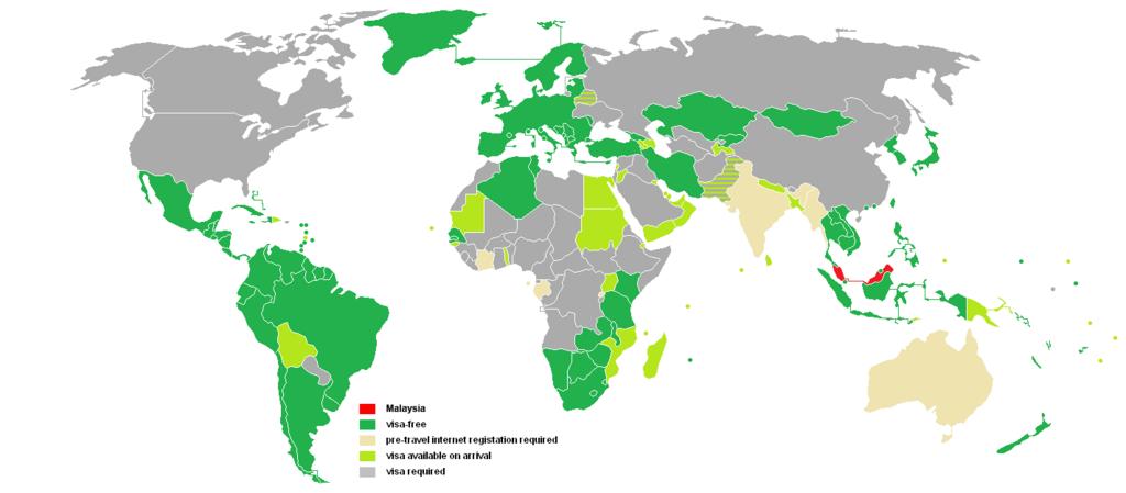 Keywords: Visa requirements for Malaysian citizens.PNG en Visa requirements for Malaysian citizens 2007-09-14 own User Noblesham Noblesham en Original upload log en wikipedia FtCG page en wikipedia MalaysiaVisaFree PNG wikitable - 18 42 4 March 2013 1 425 × 625 57 340 bytes bevis huang w en Not required Mexico Iraq - 18 42 11 January 2012 1 425 × 625 57 340 bytes Anggerik w en Visa required Ghana Gambia Not required Zambia On arrival Yemen North Korea - 12 25 27 March 2011 1 425 × 625 33 046 bytes Anggerik w en Visa required Senegal Zambia Not required Gambia Ghana On arrival Rwanda Bolivia - 07 46 21 February 2011 1 425 × 625 33 073 bytes Travelbird w en updates differentiate between visa-free visa-on-arrival - 14 06 25 February 2010 1 425 × 625 19 659 bytes Ozguroot w en +Sudan; VOA - 21 40 28 January 2010 1 425 × 625 19 633 bytes Ozguroot w en -Yemen - 01 04 24 January 2010 1 425 × 625 19 636 bytes Ozguroot w en - 23 49 23 January 2010 1 425 × 625 19 636 bytes Ozguroot w en Malaysia better color difference - 18 39 16 September 2009 1 425 × 625 32 953 bytes Anggerik w en Mexico - 08 58 24 June 2009 1 425 × 625 32 882 bytes Passportguy w en - 14 08 15 May 2009 1 425 × 625 33 036 bytes Passportguy w en update serval countries - 09 36 19 April 2009 1 425 × 625 33 005 bytes Passportguy w en add Montenegro visa free - 02 04 31 December 2008 1 425 × 625 33 022 bytes Rammsf w en Japan - visa required - 07 10 25 April 2008 1 425 × 625 32 979 bytes Noblesham w en Macedonia - visa free - 06 44 25 April 2008 1 425 × 625 33 003 bytes Noblesham w en Ethiopia - visa issued on arrival - 06 33 25 April 2008 1 425 × 625 32 976 bytes Noblesham w en Bangladesh - visa prior to arrival - 06 29 25 April 2008 1 425 × 625 33 048 bytes Noblesham w en Ecuador - visa free Dominican Republic - visa free Belarus - visa prior to arrival - 15 35 17 November 2007 1 425 × 625 32 992 bytes Noblesham w en - 15 32 17 November 2007 1 425 × 625 32 964 bytes Noblesham w en - 12 56 14 September 2007 1 425 × 625 32 958 bytes Noblesham w en - 12 51 14 September 2007 1 425 × 625 32 969 bytes Noblesham w en Maps showing visa requirements Malaysia |