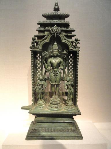 | Keywords: Vishnu with Two Consorts (Lakshmi and Saraswati), Ganga dynasty, 12th-13th century AD, Orissa, India, bronze - Freer Gallery of Art - DSC05197.JPG en Exhibit in the Freer Gallery of Art Washington DC USA This artwork is old enough so that it is in the public domain Photography was permitted in the museum without restriction 2013-02-12 14 34 24 own Daderot cc-zero Sculpture of India in the Freer Gallery of Art Uploaded with UploadWizard | ||||