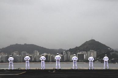 Keywords: Visit to Brazil DVIDS255844.jpg en Sailors aboard the aircraft carrier USS Carl Vinson man the rails before the ship anchors off the coast of Rio de Janeiro Carl Vinson is taking part in Southern Seas 2010 as part of a scheduled homeport shift 2010-02-26 https //www dvidshub net/image/255844 100226-N-+++++-153 2010-03-01 21 18 RIO DE JANEIRO BR PD-USGov-Military-Navy USS Carl Vinson CVN-70 Southern Seas 2010 Images from DoD uploaded by Fæ |