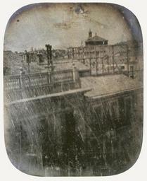 Keywords: Vista al daguerrotipo, de Madrid, hacia el año 1854, desde la calle Espoz y Mina, hacia la iglesia del Carmen.tif es Daguerrotipo tomado en Madrid hacia el año 1854 desde lo alto de un edificio de la calle Espoz y Mina hacia la iglesia del Carmen durante la época del inicio de la reforma de la Puerta del Sol Hay andamiajes en el solar donde se construyó la casa número 2 de la Puerta del Sol terminada en 1856 Esta vista al daguerrotipo es de regular calidad pareciendo un ensayo o prueba realizada por un nuevo daguerrotipista Precisamente en 1854 estaba a la venta una cámara para realizar daguerrotipos en esa misma calle Espoz y Mina número 10 en la tienda de un limpiabotas según anuncio aparecido en el Diario Oficial de Avisos de Madrid el 23 de Agosto de 1854 El daguerrotipo original fue subastado en la casa Soler y Llach de Barcelona y adquirido por el Estado español y asignado al Museo Nacional del Romanticismo de Madrid La vista original está invertida lateralmente como en la mayoría de los daguerrotipos Sin embargo aquí he invertido el original para que se vea en la posición real para poder comparar con una vista actual en Daguerreotype of Madrid circa 1854 by an unknown photographer The image is in the public domain 2012-06-21 Daguerrotipo subastado públicamente y fotografiado libremente Fotógrafo desconocido hacia el año 1854 This image or other media file is in the public domain because its copyright has expired PD-old Uploaded with UploadWizard Daguerreotypes Historical images of Madrid Historia de la Fotografía History of Photography spain in the 1850s |