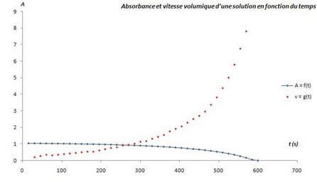 Keywords: Vitesse volumique et absorbance d'une solution de permanganate de potassium et d'acide oxalique en fonction du temps.JPG Vitesse volumique et absorbance d'une solution de permanganate de potassium et d'acide oxalique en fonction du temps Excel 2007 10/10/07 Anthony Potassium permanganate Oxalic acid |