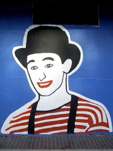 | Keywords: Vitoria - Graffiti & Murals 0278.JPG en Mural-graffiti en el barrio de Lakua de Vitoria-Gasteiz Imagen tomada el 28-12-2010 own Zarateman 2010-12-28 Cc-zero Murals in Vitoria-Gasteiz Graffiti in Vitoria-Gasteiz Graffiti of males Graffiti of faces Graffiti of clowns Bowler hats in art Red and white clothing male Black hats Striped clothing male |