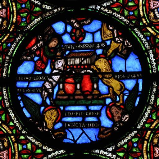 Keywords: Vitraux Saint-Denis 190110 08.jpg fr Vitrail de la Basilique Saint-Denis chapelle Saint Pérégrin Vitrail des Allégories de Saint Paul dit vitrail anagogique Détail d'un médaillon l'ouverture du livre par le lion et l'agneau Par Eugène Viollet-Le-Duc et Alfred Gérente 19ème siècle d'après les textes de l'abbé Suger own Vassil 2010-01-20 Stained glass windows of Saint-Denis from Alfred Gérente The Apocalypse on stained glass windows Gothic revival stained glass windows in France 19th-century stained glass windows in France |