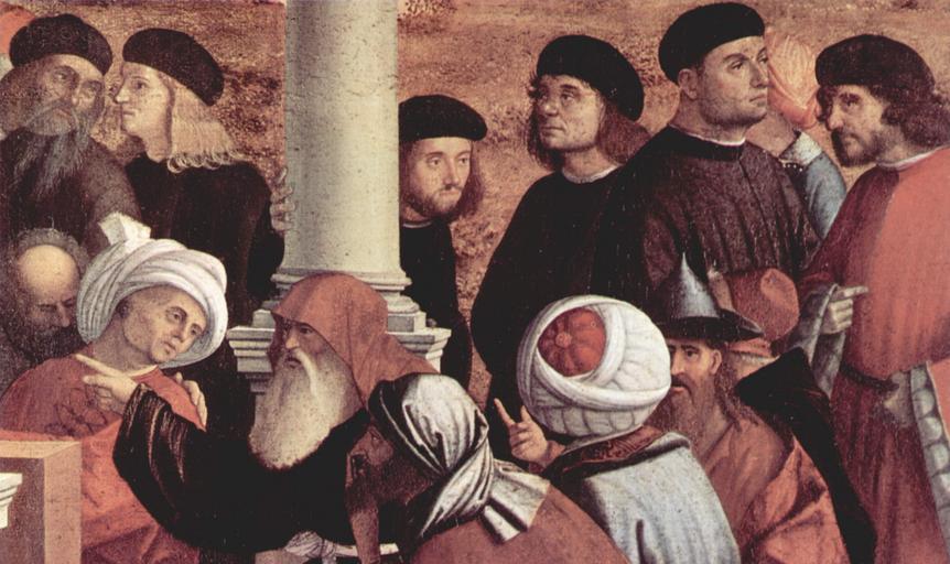 | Keywords: Vittore Carpaccio 062.jpg Artwork de Gemäldezyklus zur Legende des Hl Stephan Szene Streitgespräch des Hl Stephan Detail oil canvas de Mailand de Pinacoteca di Brera de Urspr Gemäldezyklus für eine venezianische Scuola The Yorck Project 10 000 Meisterwerke der Malerei DVD-ROM 2002 ISBN 3936122202 Distributed by DIRECTMEDIA Publishing GmbH 1514 Creator Vittore Carpaccio http //mail wikipedia org/pipermail/wikide-l/2005-April/012195 html Other versions PD-old-100 PD-Art-YorckProject Hats in art Disputation of Saint Stephen by Carpaccio |