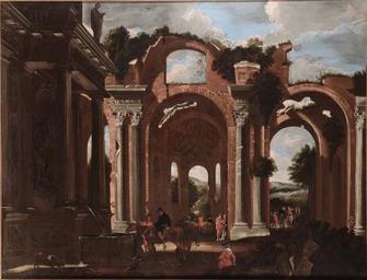 | Keywords: Viviano Codazzi and Domenico Gargiulo - Basilica of Constantine with travelers.JPG Artwork creator Viviano Codazzi and creator Domenico Gargiulo en Basilica of Constantine with travelers 1641 http //www cambiaste com/it/asta-0228/viviano-codazzi-bergamo-1604-roma-1670-e-domen asp pag 8 oil canvas cm 174 230 Auctioned at Cambi on 26 May 2015; lot 74 signed and dated PD-old-100 Viviano Codazzi Domenico Gargiulo 17th-century landscape paintings Basilica of Maxentius and Constantine Rome in art Basilica of Maxentius and Constantine Rome - Interior view |
