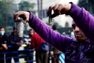 MAKE A MEME View Large Image Weeks - Cairo protests, November 20, 2011 - 01.jpg en A protester on near Tahrir Square holds a spent shotgun shell and a tear gas canister VOA - Y Weeks 2011-11-20 Y Weeks http //www voanews com/english/news/photo-galleries/134208858 html ...