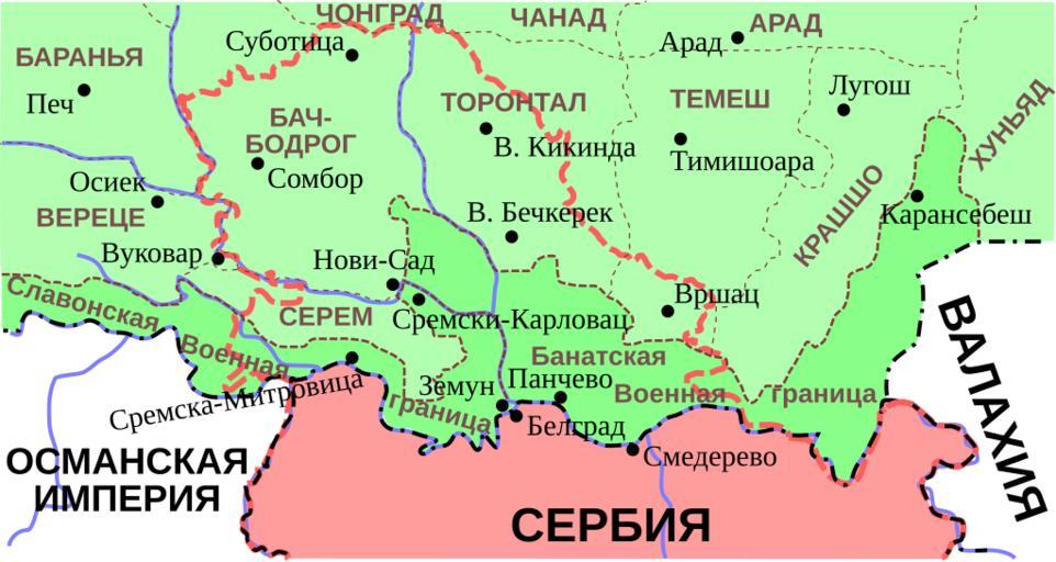 | Keywords: Vojvodina XIX ru.svg en Vojvodina in XIX cent Own Jaspe Habsburg Military Frontier Bács-Bodrog County Syrmia County Torontál County Temes County Krassó-Szörény County Maps of the Habsburg period in the history of Serbia Maps of the history of Vojvodina Maps of the history of Banat Maps of the history of Bačka Maps of the history of Syrmia Maps of Austria-Hungary |