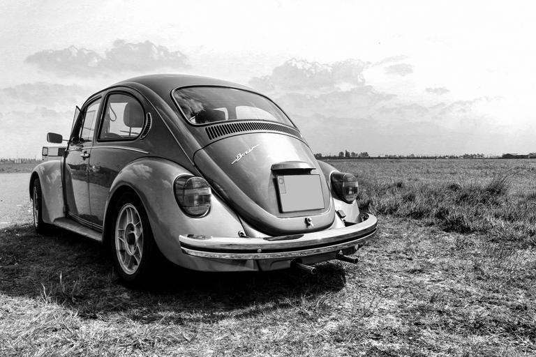 Keywords: volkswagen beetle bug black white nature oldtimer relax netherlands memories it used to be reduced 1200 34pk