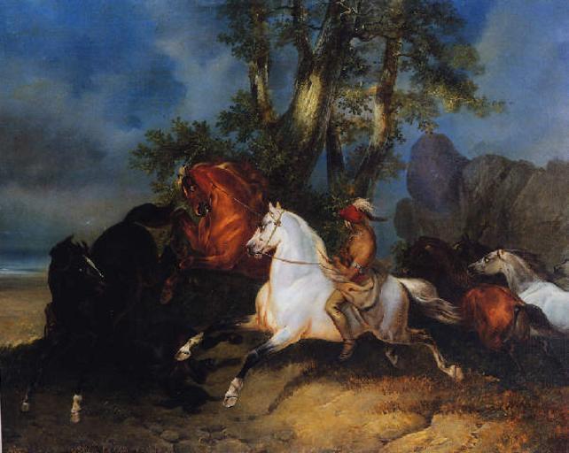Keywords: Volmar Indianer beim Einfangen von Wildpferden.jpg Indianer beim Einfangen von Wildpferden oil on canvas 96 x 120 cm http //www artnet de/artists/lotdetailpage aspx lot_id F07D229A29C778DD by 1831 Johann Georg Volmar PD-old-100 Johann Georg Volmar Paintings of Native Americans |