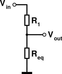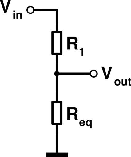 MAKE A MEME View Large Image Voltage divider-loaded eq.svg en Electrical scheme of a simplified loaded voltage divider R_eq is introduced instead of the parallel resistances R_2 and R_3 fr Schéma électrique d'un diviseur de tension chargé R_eq est introduit à la ...