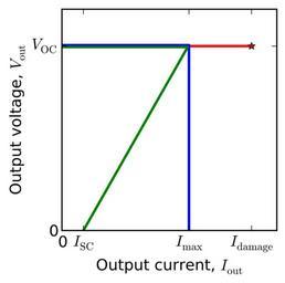 | Keywords: Voltage regulator foldback.svg  en Voltage regulator V-I curves for foldback current limited and unlimited 2013-08-01 15 37 04 own Nanite Source Created with Matplotlib Requires matplotlib Due to a bug in wikipedia's SVG renderer the raw files appear with curves peeking outside of the axes Before uploading the files were touched up by releasing and re-setting the clip paths <source lang python > from pylab import figtype ' svg' saveopts 'bbox_inches' 'tight' 'transparent' True 'frameon' True seterr divide 'ignore' V_fb concatenate linspace 9 95 9 95 100 endpoint False linspace 9 95 0 101 I_fb concatenate linspace 0 0 995 100 endpoint False linspace 0 995 0 17 101 V_cl concatenate linspace 10 05 10 05 100 endpoint False linspace 10 05 0 101 I_cl concatenate linspace 0 1 005 100 endpoint False linspace 1 005 1 005 101 V_nl linspace 10 10 151 I_nl linspace 0 1 5 151 Compute powers; Assume regulator is dropping voltage from a source 20 higher than V_oc P_cl I_cl V_cl0 1 2 - V_cl P_fb I_fb V_fb0 1 2 - V_fb P_nl I_nl V_nl0 1 2 - V_nl Gcrit 0 1 Rcrit 10 Pcrit 2 Make V-I curve plot fig figure ax axes xlim 0 1 7 ylim 0 12 ax set_xlabel 'Output current I_ \\rm out ' ax set_xticks I_fb0 I_fb-1 max I_cl max I_nl ax set_xticklabels '0' ' I_ \\rm SC ' ' I_ \\rm max ' ' I_ \\rm damage ' ax set_ylabel 'Output voltage V_ \\rm out ' ax set_yticks 0 10 ax set_yticklabels '0' ' V_ \\rm OC ' ax plot I_nl V_nl 'r' linewidth 2 ax plot I_nl-1 V_nl-1 'r ' linewidth 2 ax plot I_cl V_cl 'b' linewidth 2 ax plot I_fb V_fb 'g' linewidth 2 fig set_size_inches 3 3 fig patch set_alpha 0 savefig 'foldback-vi'+figtype saveopts Make power and resistance load plot fig figure ax axes xlim 0 0 5 ylim 0 13 ax set_xlabel 'Load conductance \Omega -1 ' ax set_xticks 0 0 1 ax set_xticklabels '0' ' G_ \\rm crit ' ax set_ylabel 'Regulator heating power W ' ax set_yticks 0 round P_fb100 1 round max P_fb 1 round P_fb-1 1 round P_cl-1 1 ax set_yticklabels '0' ' P_ \\rm max FB ' ' P_ \\rm SC FB ' ' P_ \\rm SC CL ' Plot heat in regulator vs conductance ax axvline Gcrit color ' 777777' linestyle 'dashed' linewidth 0 5 ax axhline P_fb-1 color ' 777777' linestyle 'dashed' linewidth 0 5 ax axhline P_cl-1 color ' 777777' linestyle 'dashed' linewidth 0 5 ax plot I_nl/V_nl P_nl 'r' linewidth 2 ax plot I_nl/V_nl -1 P_nl-1 'r ' linewidth 2 ax plot I_cl/V_cl P_cl 'b' linewidth 2 ax plot I_fb/V_fb P_fb 'g' linewidth 2 ax text Gcrit/2 9 'OK' horizontalalignment 'center' ax text 0 3 9 'Overload' horizontalalignment 'center' fig set_size_inches 3 3 fig patch set_alpha 0 savefig 'foldback-loadcon'+figtype saveopts Make power and conductance load plot fig figure ax axes xlim 0 16 ylim 0 13 ax set_xlabel 'Load resistance \Omega ' ax set_xticks 0 5 10 15 ax set_xticklabels '0' ' G_ \\rm crit ' ax set_ylabel 'Dissipation in regulator W ' ax set_yticks 0 round P_fb100 1 round max P_fb 1 round P_fb-1 1 round P_cl-1 1 ax set_yticklabels '0' ' P_ \\rm max FB ' ' P_ \\rm SC FB ' ' P_ \\rm SC CL ' Plot heat in regulator vs resistance amfb argmax P_fb grey lines ax axvline Rcrit color ' 777777' linestyle 'dashed' linewidth 0 5 ax plot 0 V_fbamfb/I_fbamfb P_fbamfb 2 color ' 777777' linestyle 'dashed' linewidth 0 5 ax plot 0 Rcrit Pcrit Pcrit color ' 777777' linestyle 'dashed' linewidth 0 5 curves ax plot V_nl/I_nl P_nl 'r' linewidth 2 ax plot V_nl/I_nl -1 P_nl-1 'r ' linewidth 2 ax plot V_cl/I_cl P_cl 'b' linewidth 2 ax plot V_fb/I_fb P_fb 'g' linewidth 2 ax text Rcrit/2 12 'Overloaded' horizontalalignment 'center' ax text 13 12 'Normal' horizontalalignment 'center' fig set_size_inches 3 3 fig patch set_alpha 0 savefig 'foldback-loadres'+figtype saveopts </source> cc-zero Uploaded with UploadWizard Voltage regulators Device current-voltage characteristics Images with Python source code |