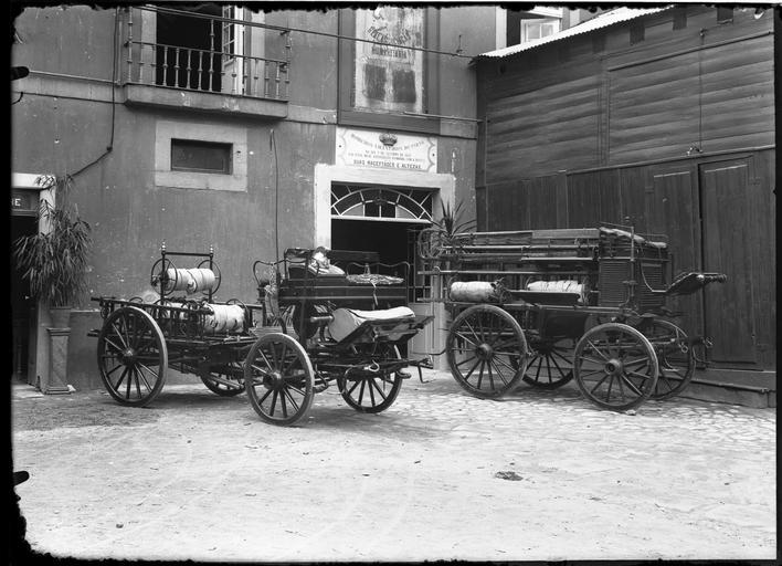 Keywords: Voluntários do Porto - carro de bombeiros (4).jpg Pormenor do pátio dos bombeiros voluntários com dois veículos de combate a incêndios ~ 1910 1919 /documents/301253/ q titulo 3A 28bombeiros 29+inicioProducao 3A 5B00000101+TO+19271231 5D+objetos 3Asim creator Foto+Guedes Info / Pic PD-old-auto-1923 1932 Images from the Arquivo Municipal do Porto Foto Guedes Porto in the 1910s History of firefighting in Portugal Files uploaded by User JotaCartas Firefighting equipment in Portugal Horse-drawn vehicles in Portugal Horse-drawn fire engines |