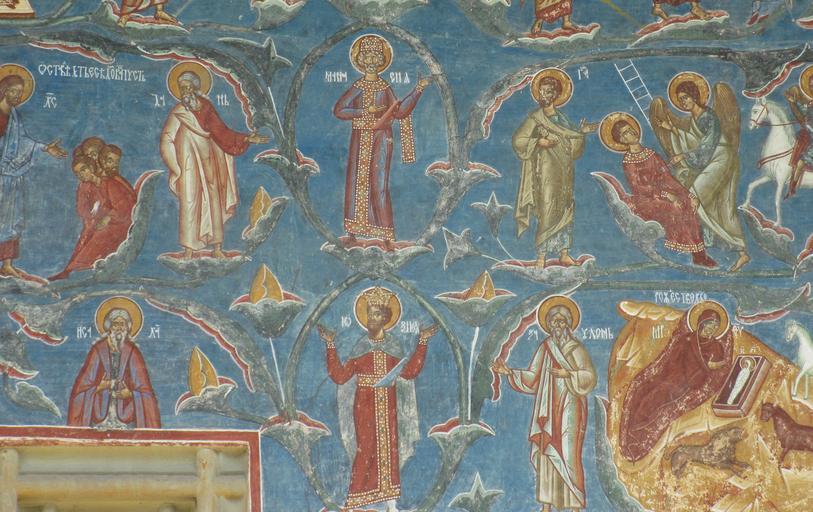 | Keywords: Voronet murals 2010 09.jpg Voroneţ Monastery Romania The church is one of the Painted churches of northern Moldavia listed in UNESCO's list of World Heritage sites own photo 14 d'Août 2010 Man vyi Own work all rights released Public domain Murals in Voroneț Murals and icons on the exterior of churches |