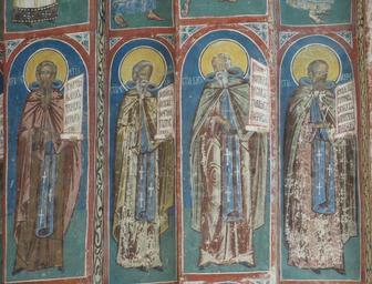 | Keywords: Voronet murals 2010 15.jpg Voroneţ Monastery Romania The church is one of the Painted churches of northern Moldavia listed in UNESCO's list of World Heritage sites own photo 14 d'Août 2010 Man vyi Own work all rights released Public domain Murals in Voroneț Murals and icons on the exterior of churches |