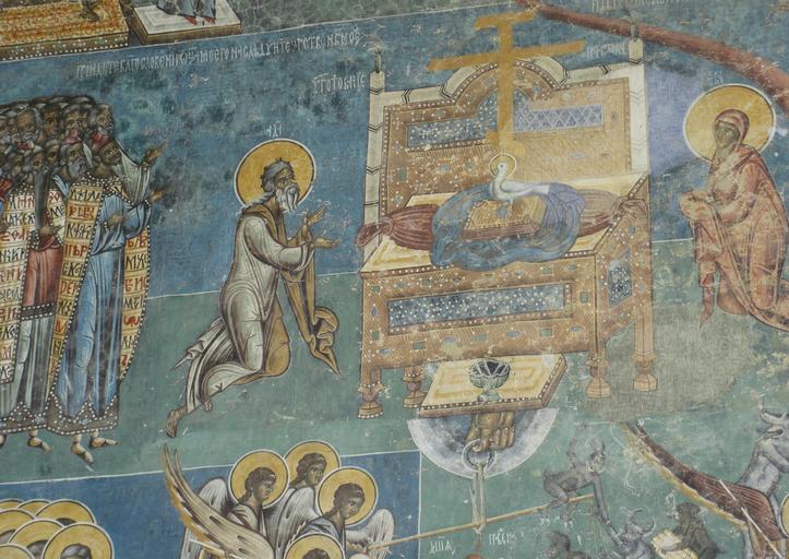 | Keywords: Voronet murals 2010 30.jpg Voroneţ Monastery Romania The church is one of the Painted churches of northern Moldavia listed in UNESCO's list of World Heritage sites own photo 14 d'Août 2010 Man vyi Own work all rights released Public domain Murals in Voroneț Murals and icons on the exterior of churches Frescos of the Last Judgment Adam and Eve |