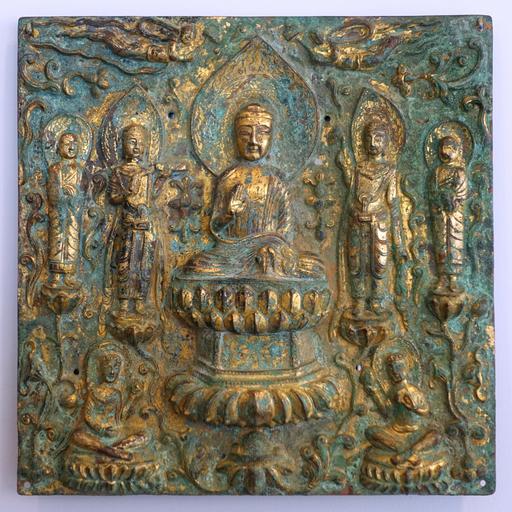 Keywords: Votive plaque with Seated Buddha Shakyamuni, Attendant Bodhisattvas, and Monks, China, Sui dynasty, 581-618 AD, gilt bronze - Arthur M. Sackler Museum, Harvard University - DSC00865.jpg en Exhibit in the Arthur M Sackler Museum Harvard University Cambridge Massachusetts USA This artwork is in the public domain because the artist died more than 70 years ago 2015-04-11 11 00 13 own Daderot other versions PD-old-70 cc-zero Buddhist statuettes in the Arthur M Sackler Museum Chinese sculptures in the Arthur M Sackler Museum Metalwork of the Sui Dynasty
