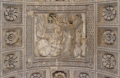 Keywords: Voûte arc triomphe carrousel.jpg detail of the vault of the main arch of the Arc de Triomphe du Carrousel in Paris own 2010-07-17 Jebulon 48 51 42 1 N 2 19 58 4 E Ceiling of Arc de Triomphe du Carrousel Vaults in Paris Rosettes ornament Coffered soffits Victory sculpture Reliefs in Paris trophy architectural Quality images by Jebulon Quality images of architectural elements in Paris Quality images of Paris 1er arrondissement QualityImage |