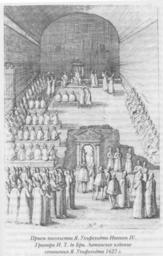 | Keywords: Voyage to Moscovia by Jacob Ulfeldt - Ivan IV's audience.jpg  П ием ца ем Иваном IV иност анных послов в Александ овской слободе Г авю а из книги «Путешествие в  осковию» Я Ульфельда XVII в http //fanread ru/book/4849325/ page 40 17th c Jacob Ulfeldt Jacob Ulfeldt Foreign ambassadors in Russian Tsardom Ivan IV of Russia in engravings PD-old  |