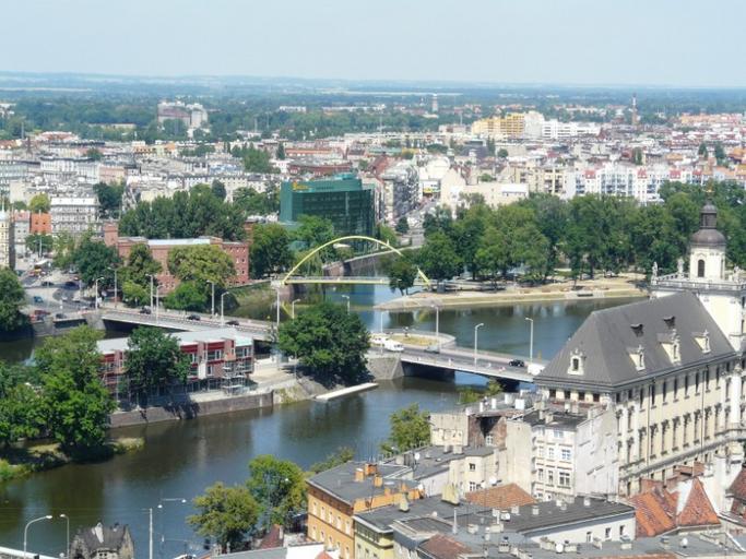 Keywords: Vratislav reka.JPG cs Vratislav - řeka Odra pl Wrocław - Rzeka Odra own Bch Panoramic views of Wrocław Park Plaza hotel Wrocław Słodowa footbridge Uniwersytecki Bridge